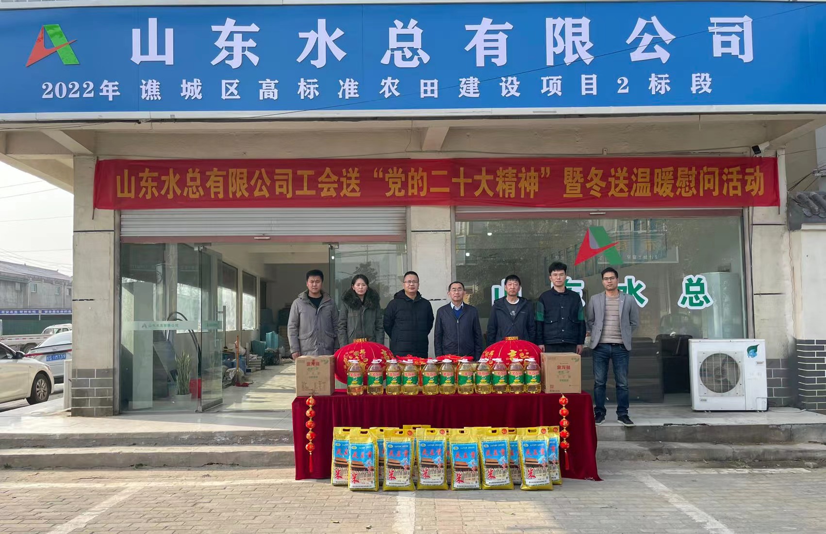 天博网页版党委委员、副总经理袁英杰到第一分天博网页版2022年谯城区高标准农田建设-2 标段开展送“党的二十大精神”暨冬送温暖慰问活动